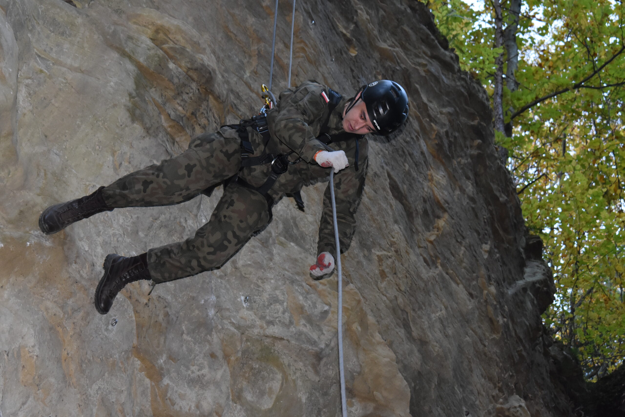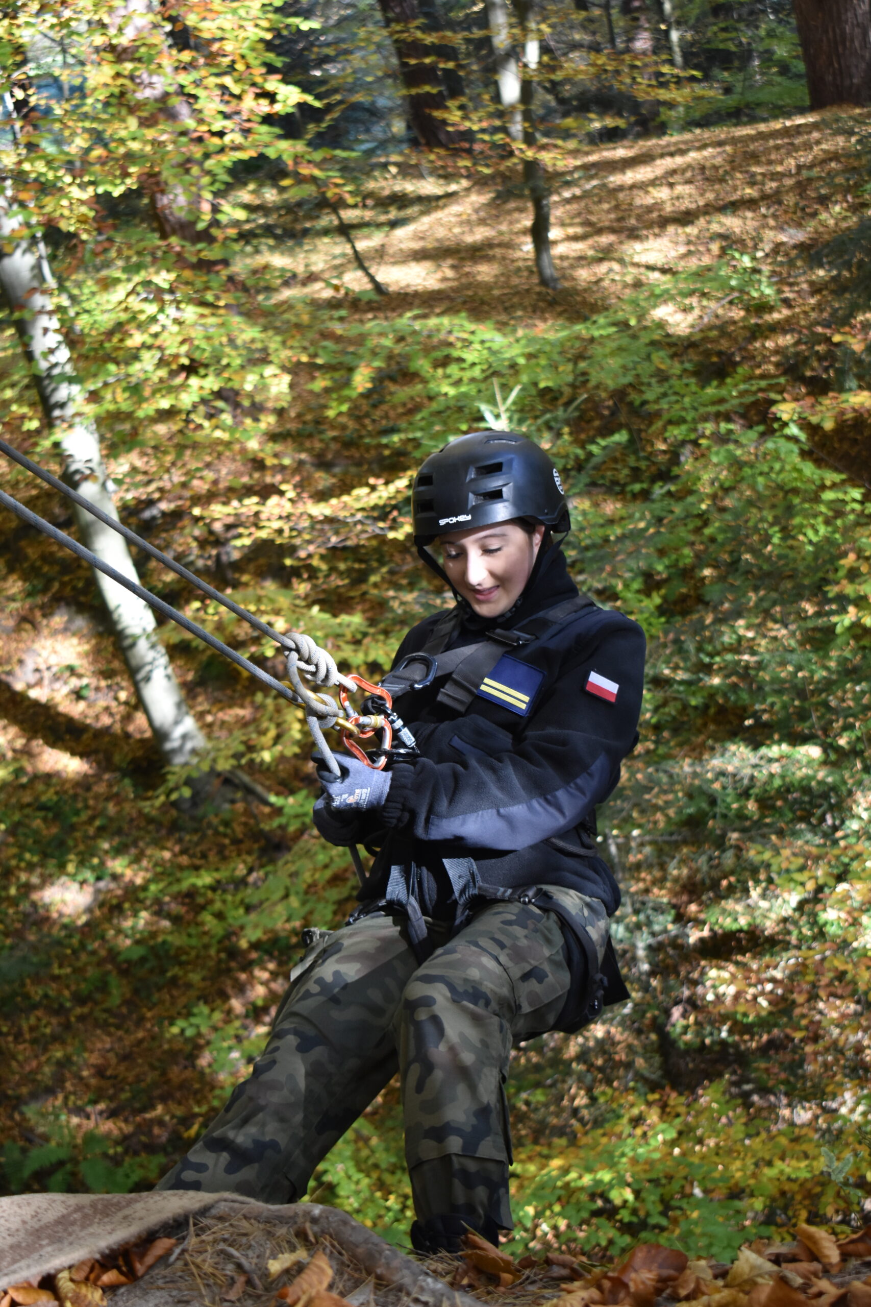 W dniach 21-24 października 2024r., uczniowie klasy II i III LO podstawy wojskowości wraz z wychowawcami – Arturem Dziewulskim i Adamem Krakowiakiem oraz p. Małgorzatą Michalczuk przebywali na wojskowym obozie szkoleniowym w sercu Bieszczad – ZWIERZYNIU/k. Myczkowce. Podczas kilkudniowego pobytu w ośrodku UROCZYSKO kadeci przeszli bardzo intensywne szkolenie, obejmujące tematykę: techniki strzeleckie, linowe, logistyczne i dywersyjne. Uczestnicy obozu realizowali różny program zajęć w zależności od stopnia zaawansowania. Uczniowie klasy II-ej, będąc pierwszy raz na obozie – realizowali program podstawowy. Starsi uczniowie z klasy III – ej, uczestnicząc w szkoleniu po raz drugi, realizowali program w stopniu zaawansowanym. W trakcie zajęć kadeci poznali zasady pola walki, posługiwania się różnego rodzaju bronią, działań z ukrycia, zagadnienia z zakresu taktyki wspólnej dla wojska i Policji. Znaczną część szkolenia stanowiło praktyczne wykorzystanie sprzętu alpinistycznego podczas ćwiczeń technik linowych wykorzystywanych w formacjach mundurowych, a także rozpoznania i zasad walki ogniowej. Wszystkie elementy szkolenia wykorzystano podczas wielogdzinnych zajęć praktycznych pod bacznym okiem instruktorów formacji KADET – byłych żołnierzy jednostek specjalnych. Mocnych wrażeń dostarczyła kadetom, rozgrywana w bieszczadzkim lesie gra terenowa paintball.