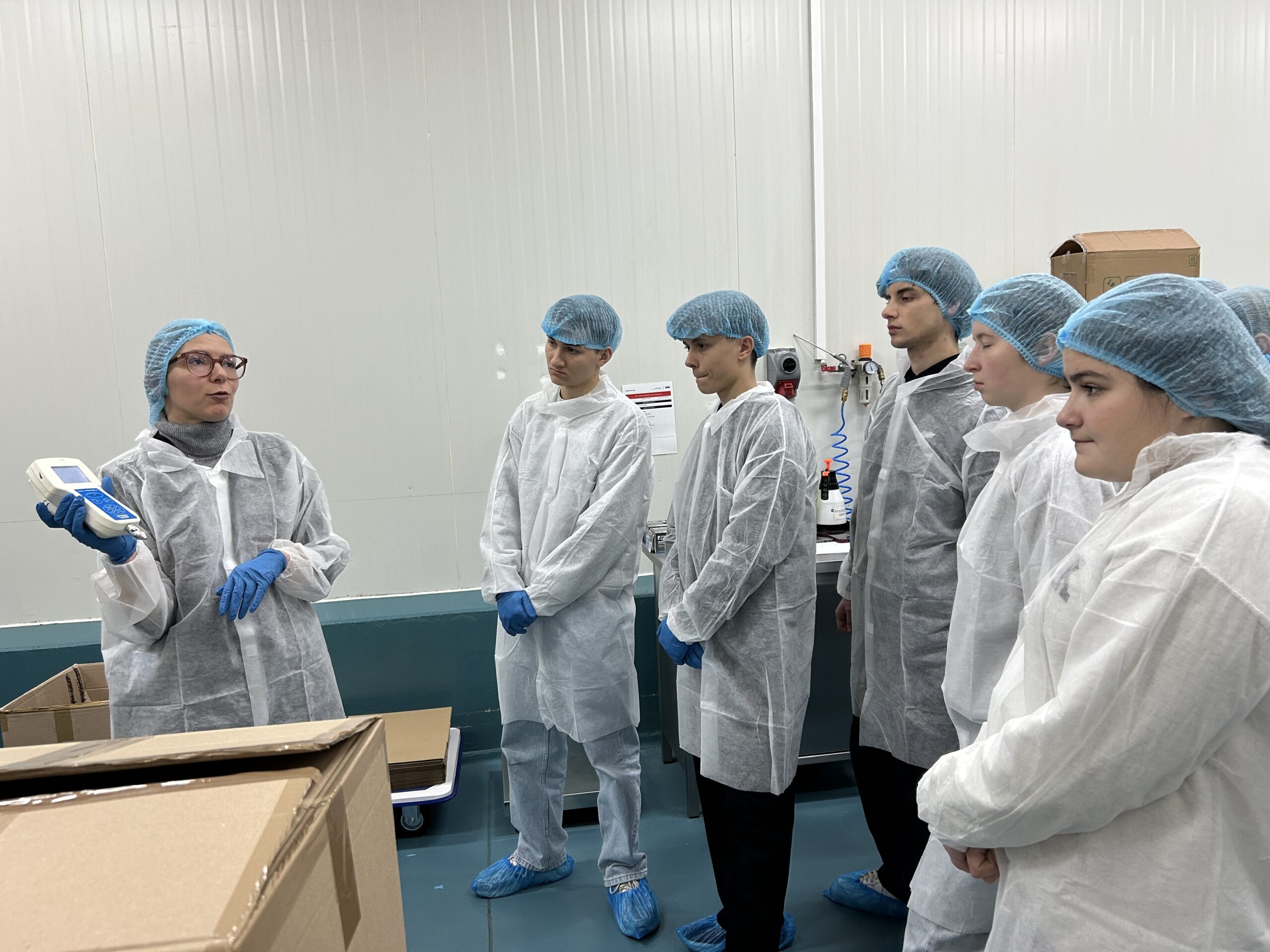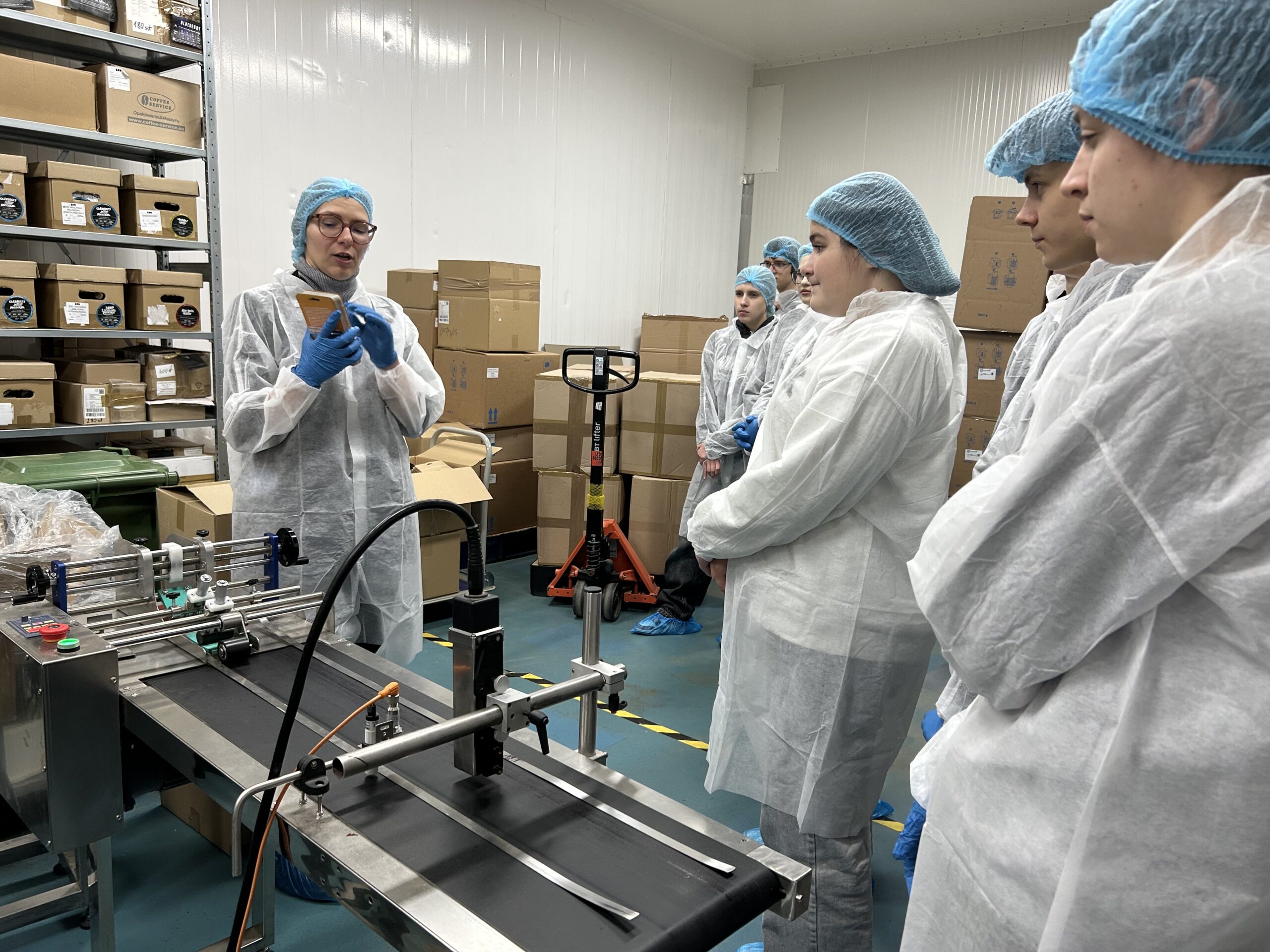 W części praktycznej uczniowie mogli na własne oczy zobaczyć, jak przebiega proces produkcji – od liofilizacji, przez pracę nowoczesnych linii pakujących, po funkcjonowanie systemów kontroli jakości. Pracownicy szczegółowo omówili każdy etap przetwarzania oraz sposoby zapewnienia najwyższych standardów higieny i bezpieczeństwa żywności.