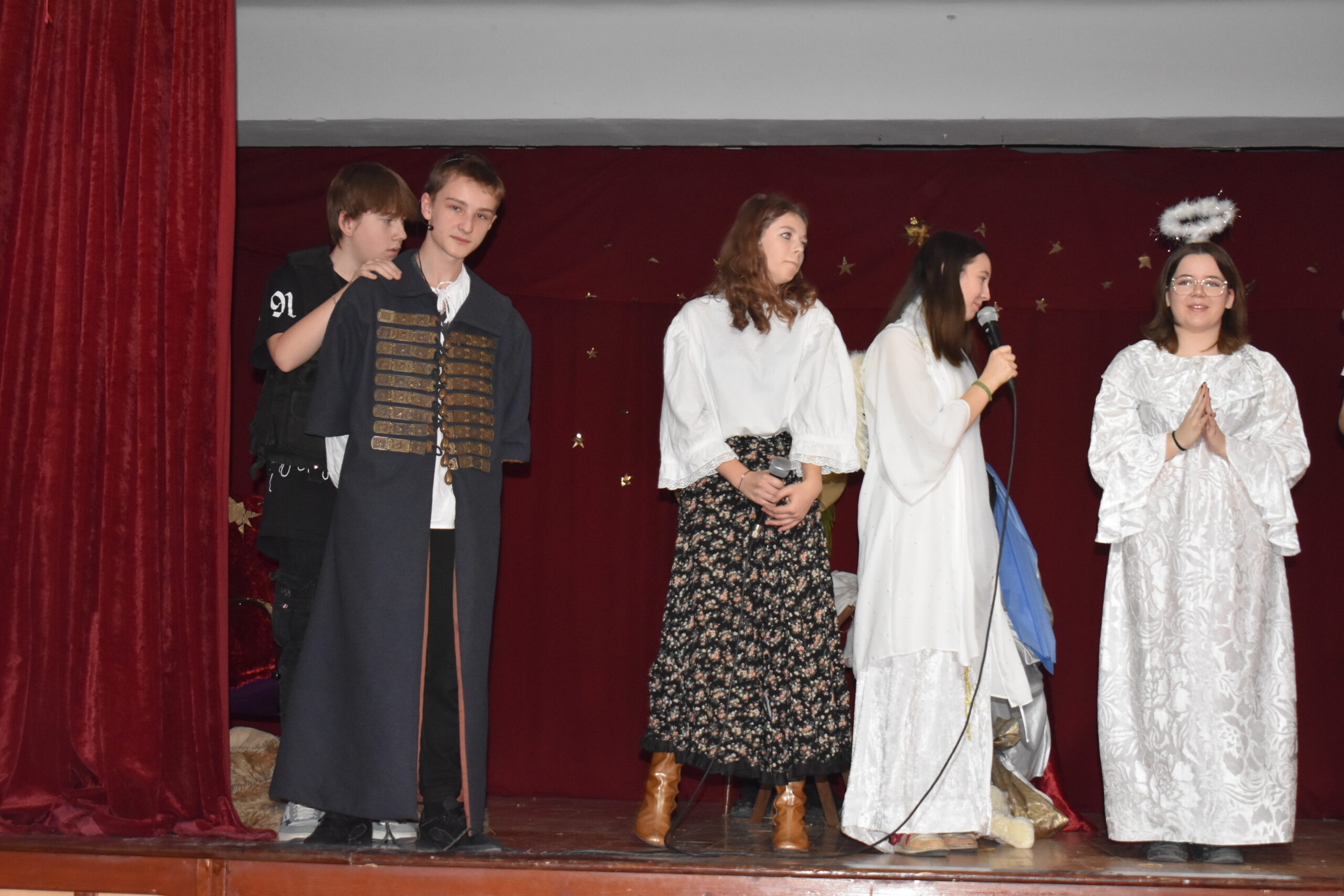 Jak co roku, w przedświątecznym klimacie szkoły nie mogło zabraknąć inscenizacji JASEŁEK. I tym razem uczniowie wespół z katechetką siostrą Kasią Sową nie zawiedli przygotowali piękny spektakl, nawiązujący do narodzin Jezusa Chrystusa, wzbogacony o odniesienia do współczesnej rzeczywistości. Muzycznie – kolędowo w nastrój ŚWIĄT wprowadził zebranych w auli, szkolny chórek z solistkami Gabrysią i Rhianą. Wicedyrektor szkoły Ewa Jedlińska podziękowała artystom i siostrze Kasi za przygotowanie wyjątkowej uroczystości i złożyła całej społeczności szkoły życzenia świąteczne. Spotkanie zakończyło wspólne radosne śpiewanie kolęd i pastorałek.