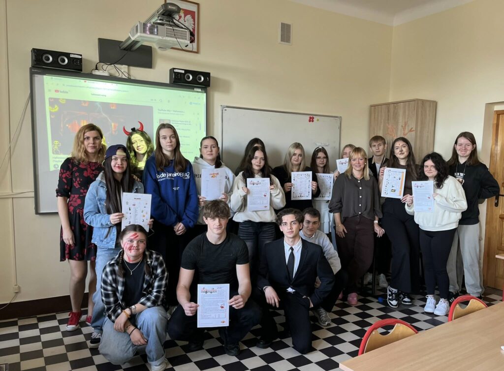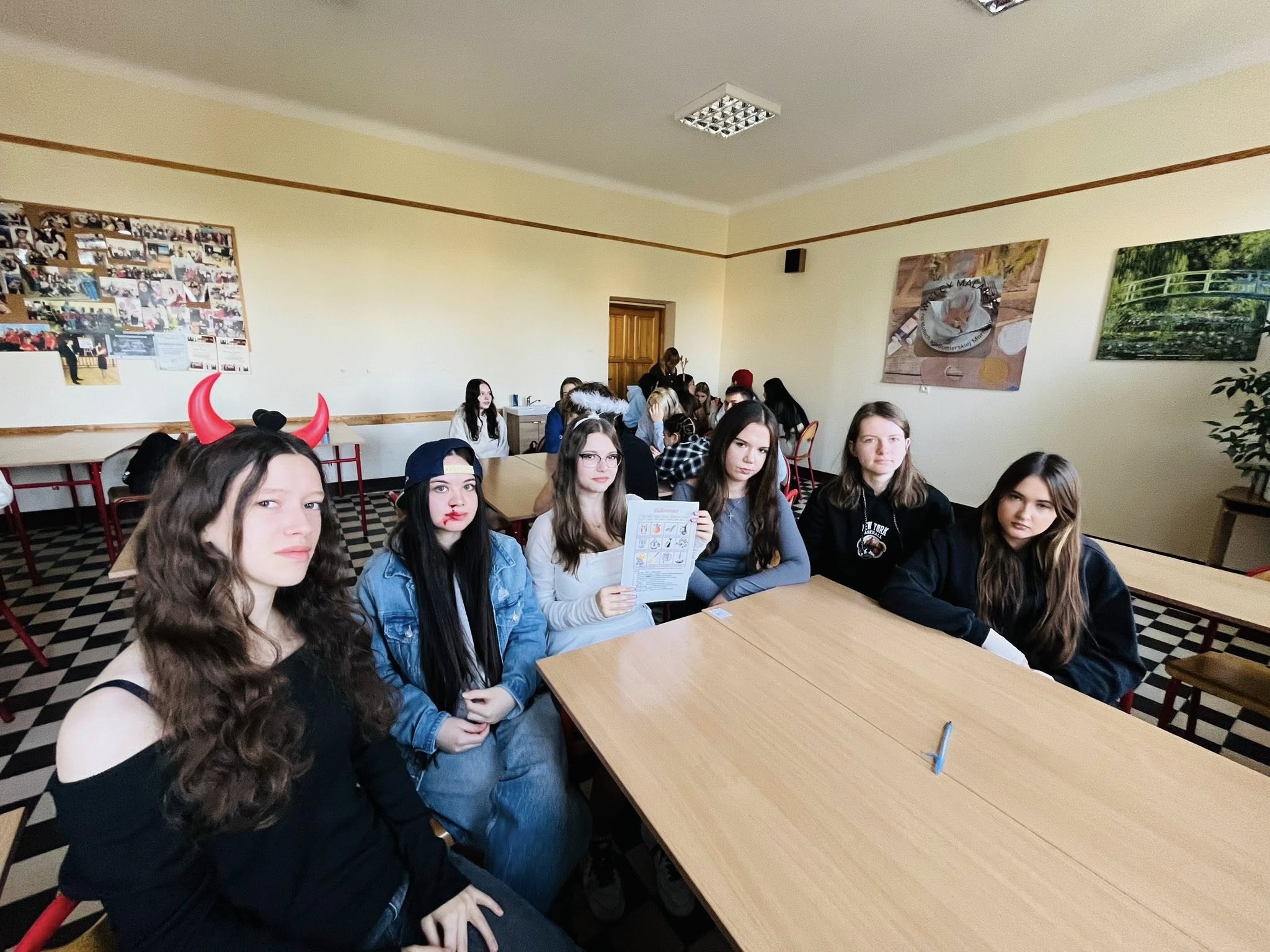 31 października 2025 r. uczniowie klas IV HŻ, III HŻ oraz I LO wzięli udział w wyjątkowych warsztatach językowych o tematyce Halloween. Podczas zajęć utrwalali słownictwo związane z tym popularnym świętem, grali w gry językowe takie jak Taboo czy Dobble, a także rozwiązywali interaktywne ćwiczenia leksykalno-gramatyczne w języku angielskim i niemieckim.