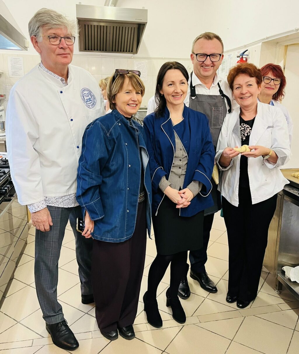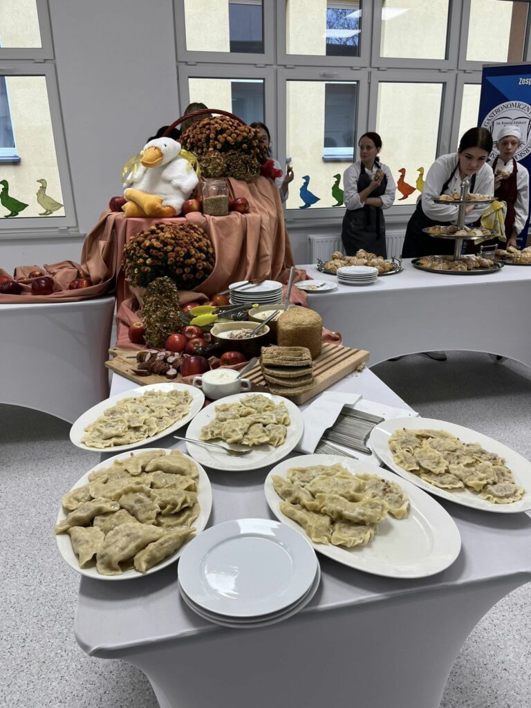 W dn. 6.11.2025 odbyły się kolejne warsztaty kulinarne z cyklu „Łowcy Smaków”. Tematem spotkania były rogale świętomarcińskie. Gośćmi honorowymi i jednocześnie uczestnikami warsztatów byli: Starosta Sandomierski p. Marcin Piwnik, Burmistrz Miasta p. Paweł Niedźwiedź, p. Urszula Chmiel z Wydziału Oświaty i Promocji, dyrektorzy okolicznych szkół podstawowych: p. Marcin Sykucki, p. Grzegorz Socha, p. Mieczysław Dygas, p. Elżbieta Sobolewska, p. Mariola Klimek, przewodnicząca Rady Rodziców p. Joanna Wiechnica, p. Agnieszka Stasiak – Wiórkiewicz ze Szkoły Postawowej w Bilczy oraz p. Marzanna Bączkowska ze Szkoły Postawowej w Obrazowie.