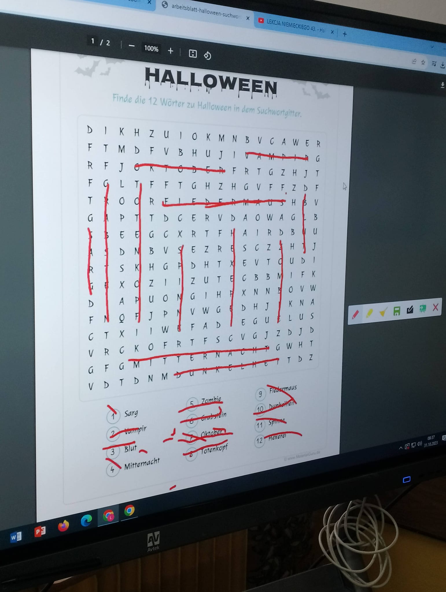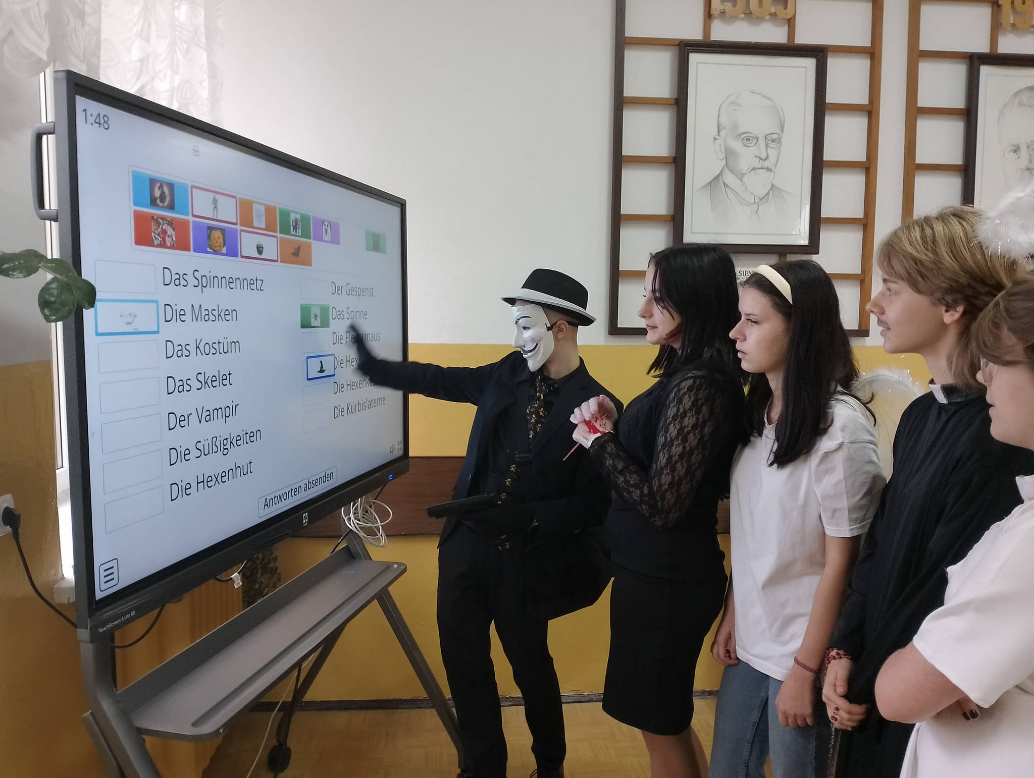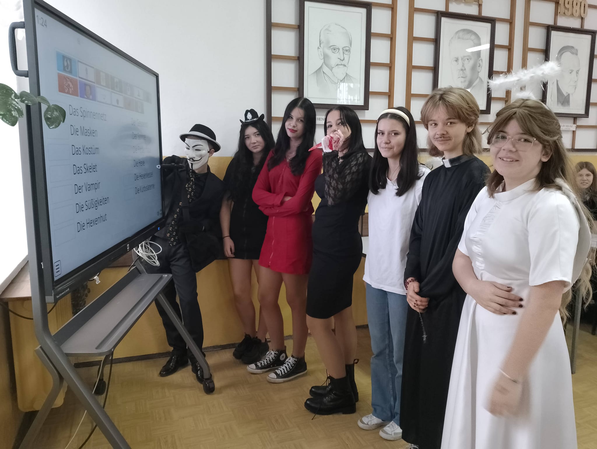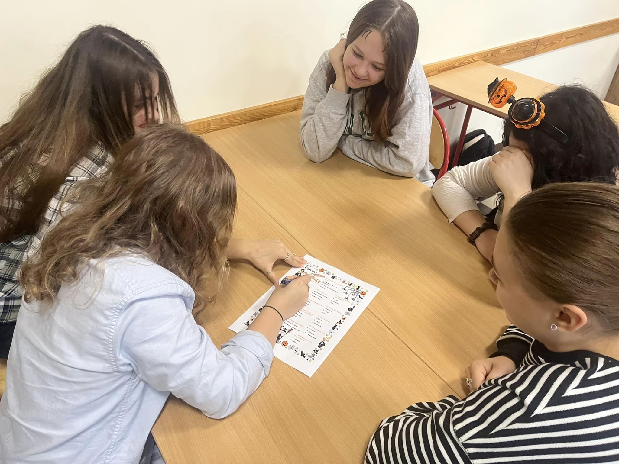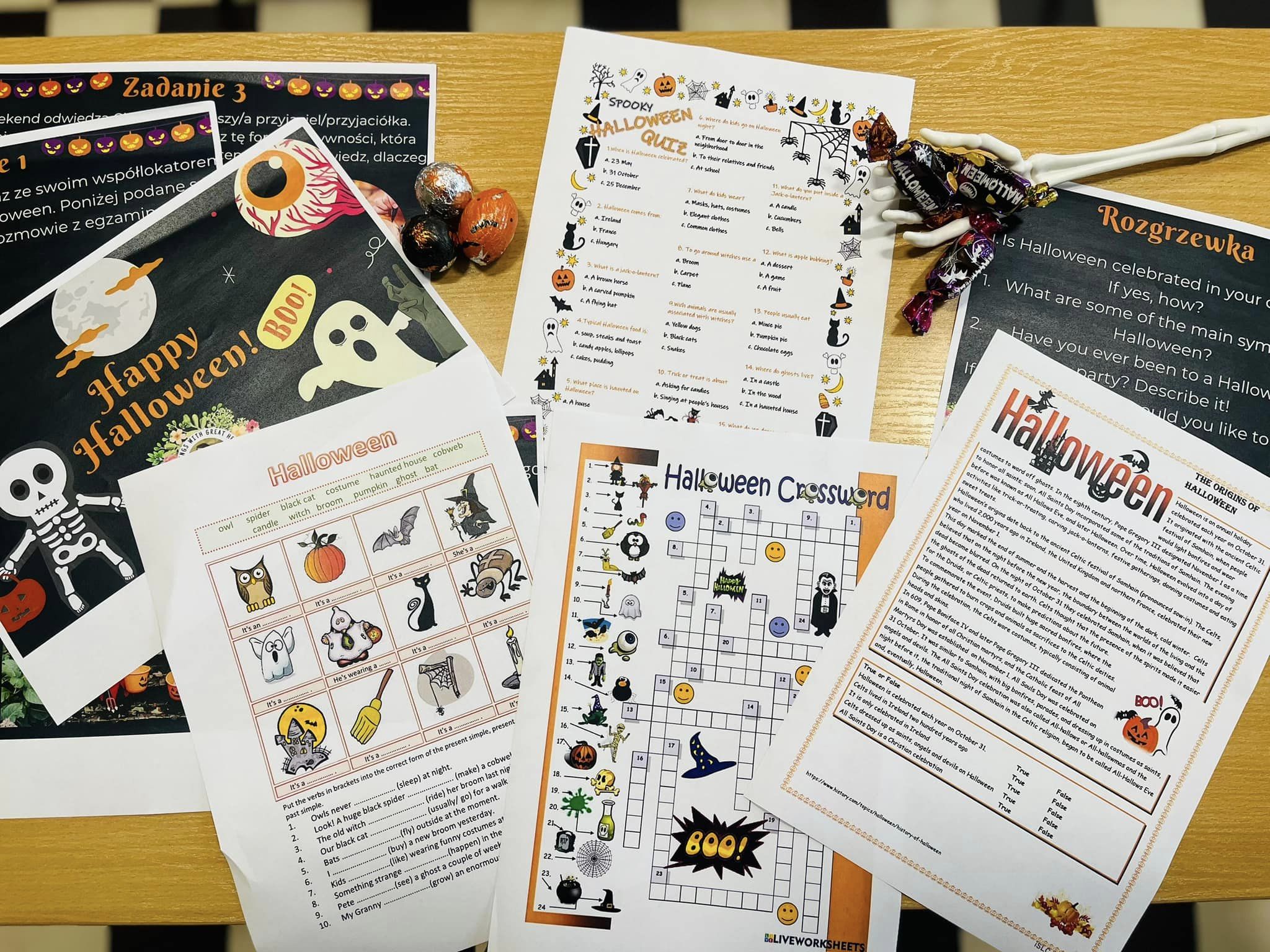 Uczniowie klas I HŻP, I LO, II LO, II TH oraz V HŻ wzięli udział w zajęciach kulturowych o tematyce Halloween. Pracując metodą stacji dydaktycznych młodzież utrwalała słownictwo, zdobywała wiedzę na temat korzeni tego święta, doskonaliła umiejętności gramatyczne a przy tym doskonale się bawiła. Nie zabrakło również zadań interaktywnych. Na zakończenie lekcji uczniowie otrzymali słodkie upominki, w myśl powiedzenia „trick or treat / cukierek albo psikus”.